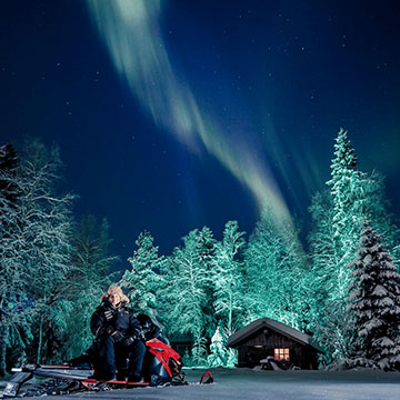 In the evening Northern Lights snowshoeing, or cross country skiing A relaxing time and panorama sauna& outdoor hot tube available 3- course dinner at Octola Lodge by own chef. |